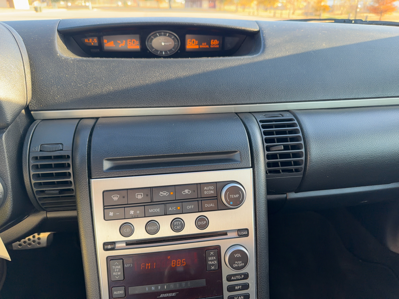 Stay connected and entertained with the satellite radio pre-wiring and rear window in-glass antenna. The Infiniti signature analog clock adds a touch of sophistication to the cabin, while the illuminated visor vanity mirrors and dual cup holders provide convenience on the go.